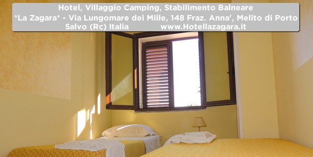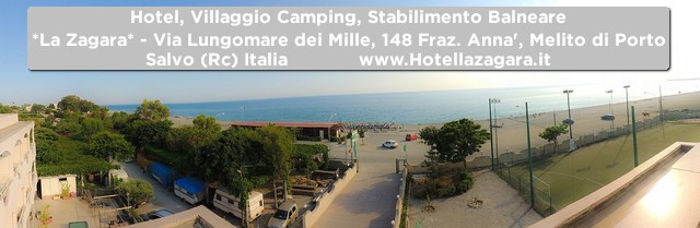Il villaggio turistico Hotel - Villaggio Camping La Zagara a pochi chilometri da Reggio Calabria, al centro della riviera della zagara è aperto tutto l'anno.Offre tranquillita, mare limpido,spiaggia attrezzata e ambiente naturale.Il villaggio camping tutto alberato,dispone di bungalows e camere con servizi, mini appartamenti, piazzole per tende e roulottes all'ombra, servizi igienici moderni con docce calde, bar, pizzeria, ristorante, tabacchi, lido attrezzato, souvenir, animazione, serate giochi, calcetto, beach volley, terrazza panoramica e discoteca all'aperto